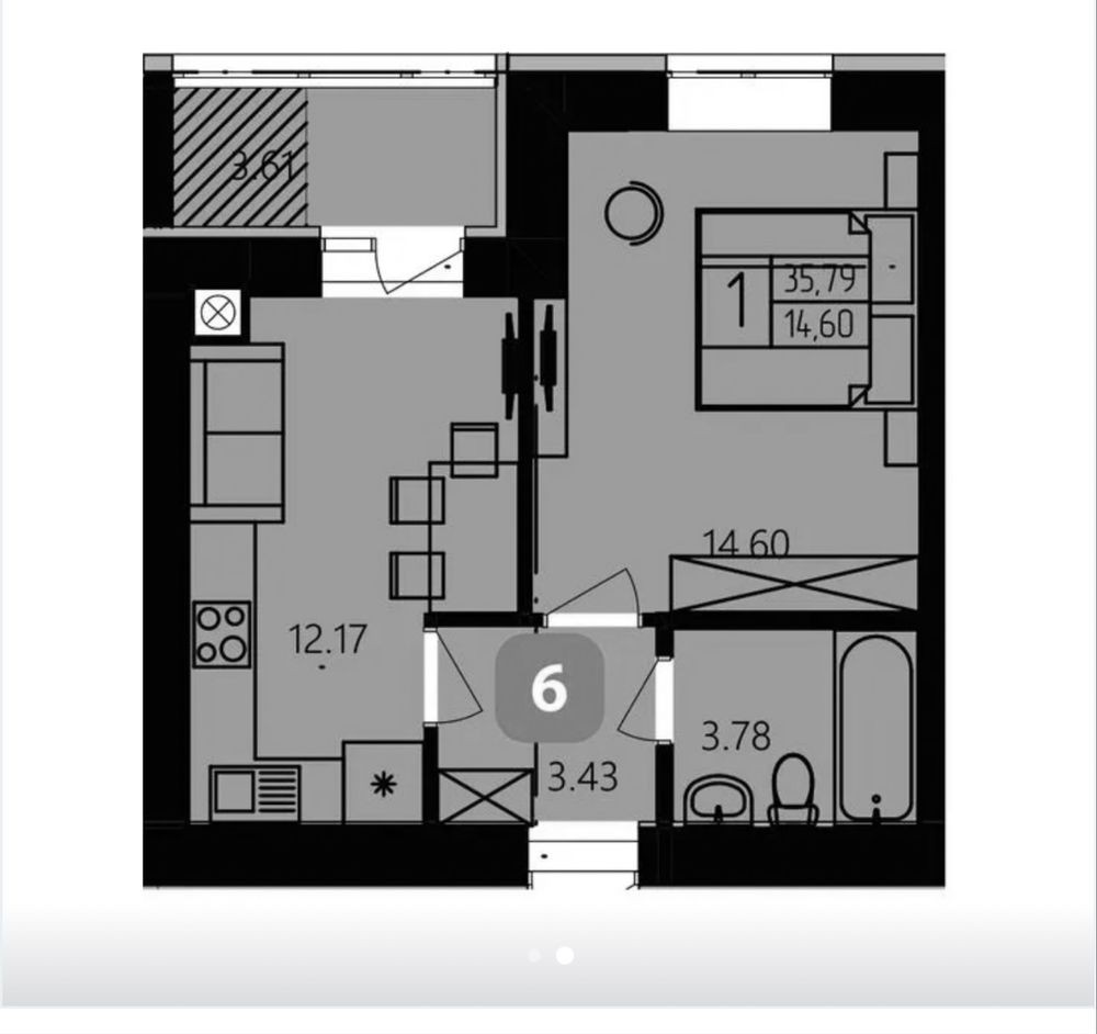 • Общая площадь 35.79 м2