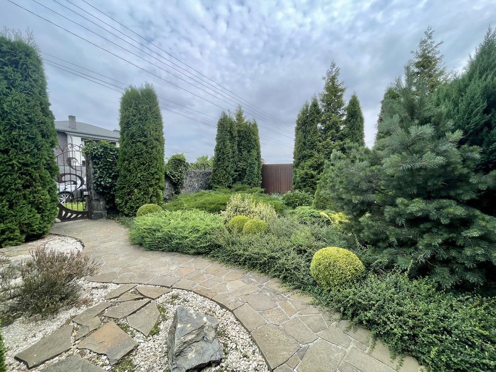 Цокольний складається з гаража, котельні пральні, кабінету, комори. На першому поверсі розташована прихожа, простора вітальня кухня, та три окремі житлові кімнати. У будинку залишається якісна вмонтована кухня, та частково меблі в кімнатах. Земельна ділянка 7 соток. з засіяним газоном. Цікава пропозиція Телефонуйте прямо зараз. Остаточна ціна буде обговорюється з реальним покупцем!