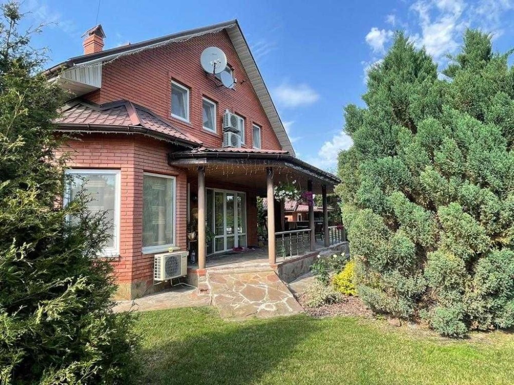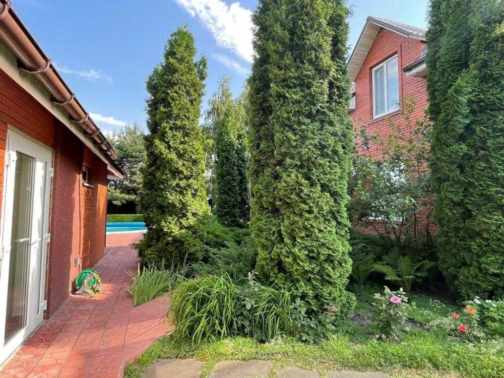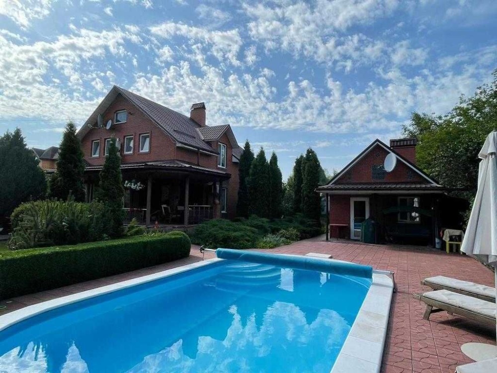 Добротный кирпичный дом в элитном пригороде Киева, отличная планировка - 4 спальни,2 санузла, кабинет, гостиная с камином и выходом на просторную террасу , 2 санузла Великолепный ухоженный участок 15 соток , бассейн , гостевой домик к сауной , скважина для дома , полив участка централизованный водопровод