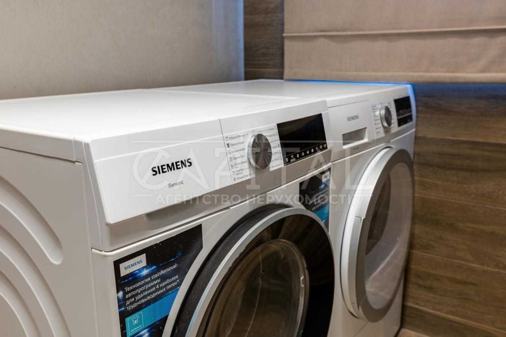 Кухня функціональна й продумана до деталей, укомплектована якісною побутовою технікою Siemens, зручно організована для активного використання та сімейних вечерь.