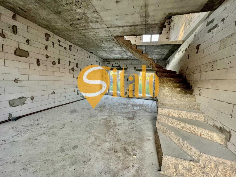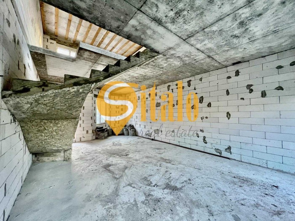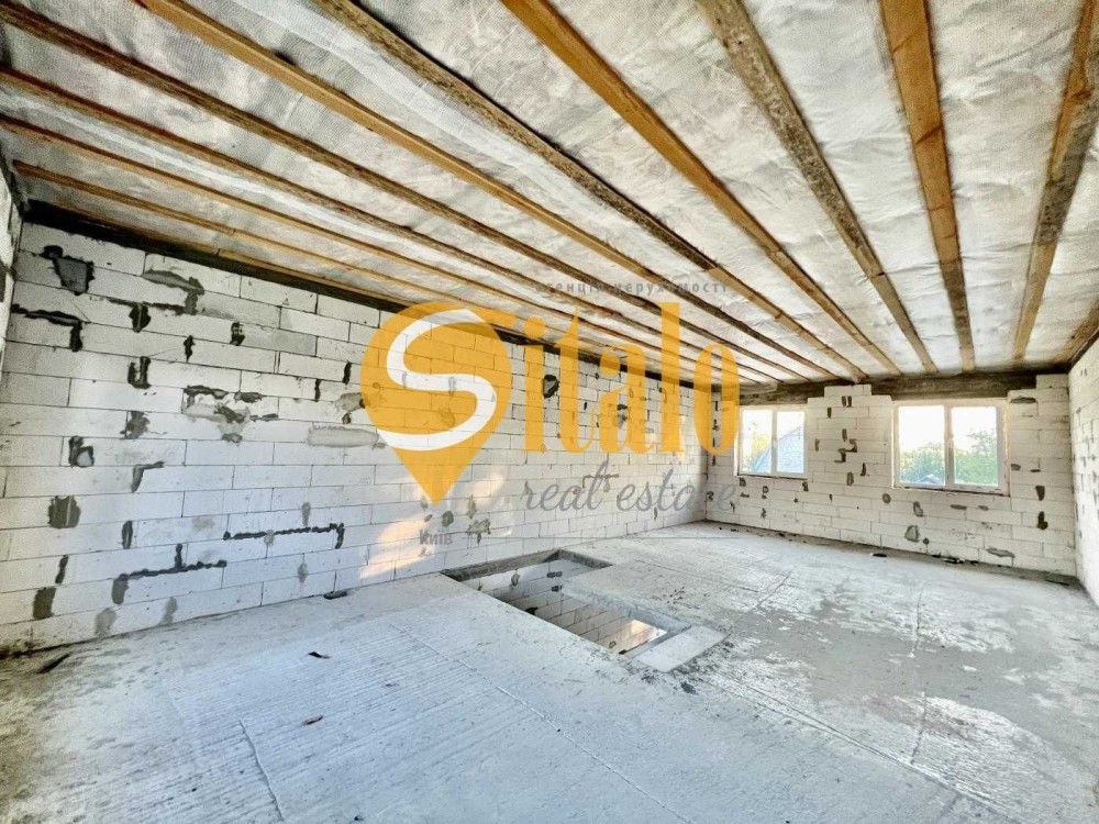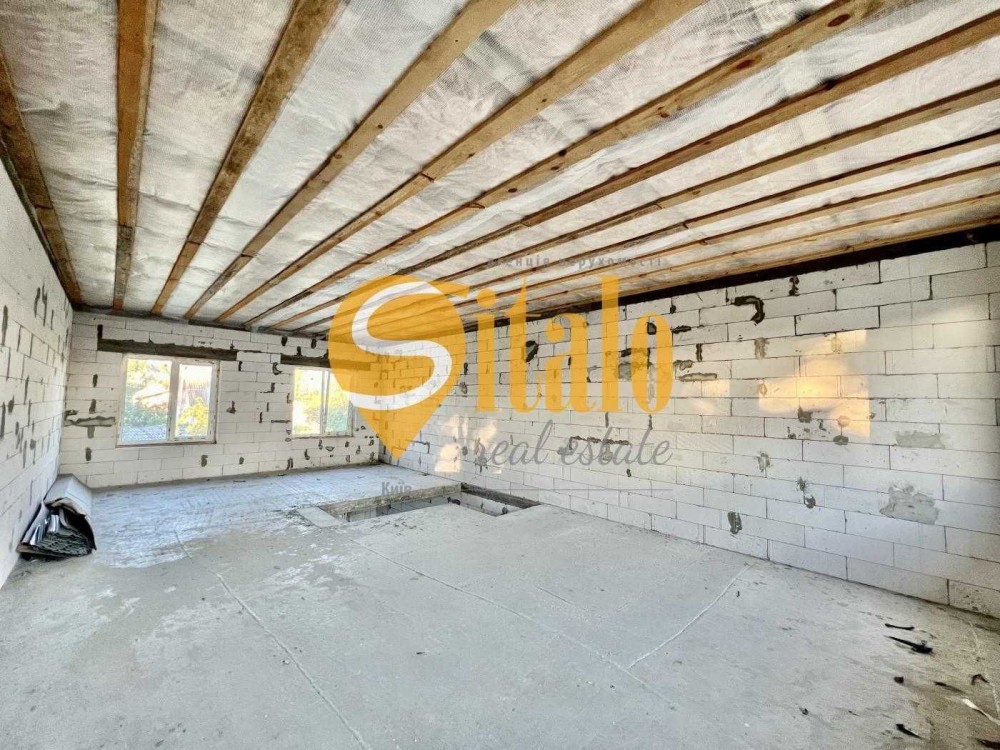 Продається новий індивідуальний житловий будинок котеджного типу загальною площею 131 м.кв. під чистове оздоблення, розташований в селі Крячки Фастівського (колишнього Васильківського) району Київської області на території нового житлового масиву із сучасною котеджною забудовою, що перебуває на відстані 20 км від станції метро «Теремки» міста Києва та за 1,5 км від міста Васильків. Житловий будинок складається з першого та мансардного поверхів. Загальна площа будинку із допоміжними спорудами становить 173,1 м.кв., з яких: а) площа будинку ‒ 131,0 м.кв., у тому числі житлова (основна) ‒ 94,1 м.кв. та допоміжна (підсобна) ‒ 39,6 м.кв.; б) площа тераси – 23,1 м.кв.; в) площа трьох балконів – 13,4 м.кв. (5,8 + 4,9 +2,7 м.кв.); площа ґанку – 5,6 м.кв. Котедж вміщує в собі 5 (п’ять) доволі просторих кімнат, 2 (два) санвузли (на кожному із поверхів), 1 (одне) технічне приміщення (котельня або бойлерна), 2 (два) коридори, 1 (одну) вітальню із виділеною еркером обідньою зоною, що поєднана з кухнею. Із вітальні є окремий вихід на велику терасу, з якої відкривається затишний вигляд на внутрішній двір. Кожна з трьох мансардних кімнат має окремий вихід на балкон. Над усією площею мансардного поверху розташоване містке горищне приміщення. Будинок приєднаний до електропостачання потужністю ‒ 12кВт (3 окремих фази). Має свердловину глибиною 55 метрів із фактичним дебітом (спроможною потужністю) ‒ 2,5 м.куб./год. та каналізацію септик з переливом на 11 м.куб. На усій площі першого (крім житлової кімнати) та у санвузлі мансардного поверхів встановлена система водяної теплої підлоги фірми «Rehau». По котеджу розведені: опалення, водопостачання і каналізація. В будинку передбачена можливість встановлення камінної топки, а також приєднання котеджу до газорозподільної мережі та всесвітньої мережі Інтернет. Індивідуальний житловий будинок розташований на земельній ділянці площею 0,075га з цільовим призначенням – (02.01) для будівництва і обслуговування житлового будинку, господарських будівель і споруд (присадибна ділянка). Під житловою забудовою перебуває 0,0115га земельної ділянки, решта 0,0635га займає просторий двір. Кадастровий номер земельної ділянки: 3221487004:03:006:0328. Земельна ділянка огороджена парканом із монолітного фундаменту, що опорядковане металевим штахетом із обох боків та металевим профілем з тильної та фасадної сторін. Заїзд у двір має відкатні ворота. На території двору (перед будинком) облаштоване загальне паркомісце на 2 (два) автомобіля, решта двору засіяне газонною травою. Котедж побудований з якісних матеріалів за проектом європейського архітектурного бюро. Так, фундамент, перекриття та міжповерхові сходи ‒ монолітні. Стіни будинку збудовані з газоблоку AEROC D500 (товщиною 300мм), що утеплений пінопластом 100мм. Внутрішні міжкімнатні перегородки виконані із цегли. Дах ‒ металочерепиця фірми «Ruukki», що утеплений мінераловатними плитами загальною товщиною 200мм. Вікна вироблені з профілю фірми «Rehau» серії EVRO 70. Фасад котеджу покритий акриловою штукатуркою. Будинок за усім периметром має вимощення шириною 0,9 метри, що облаштоване фігурними елементами мощення (ФЕМ). Зручне ергономічне планування будинку, а також наявність високих стель обох поверхів дає можливість відчувати себе вільно і затишно. Завдяки правильному утепленню зовнішніх стін будинку, у ньому прохолодно влітку та тепло вз