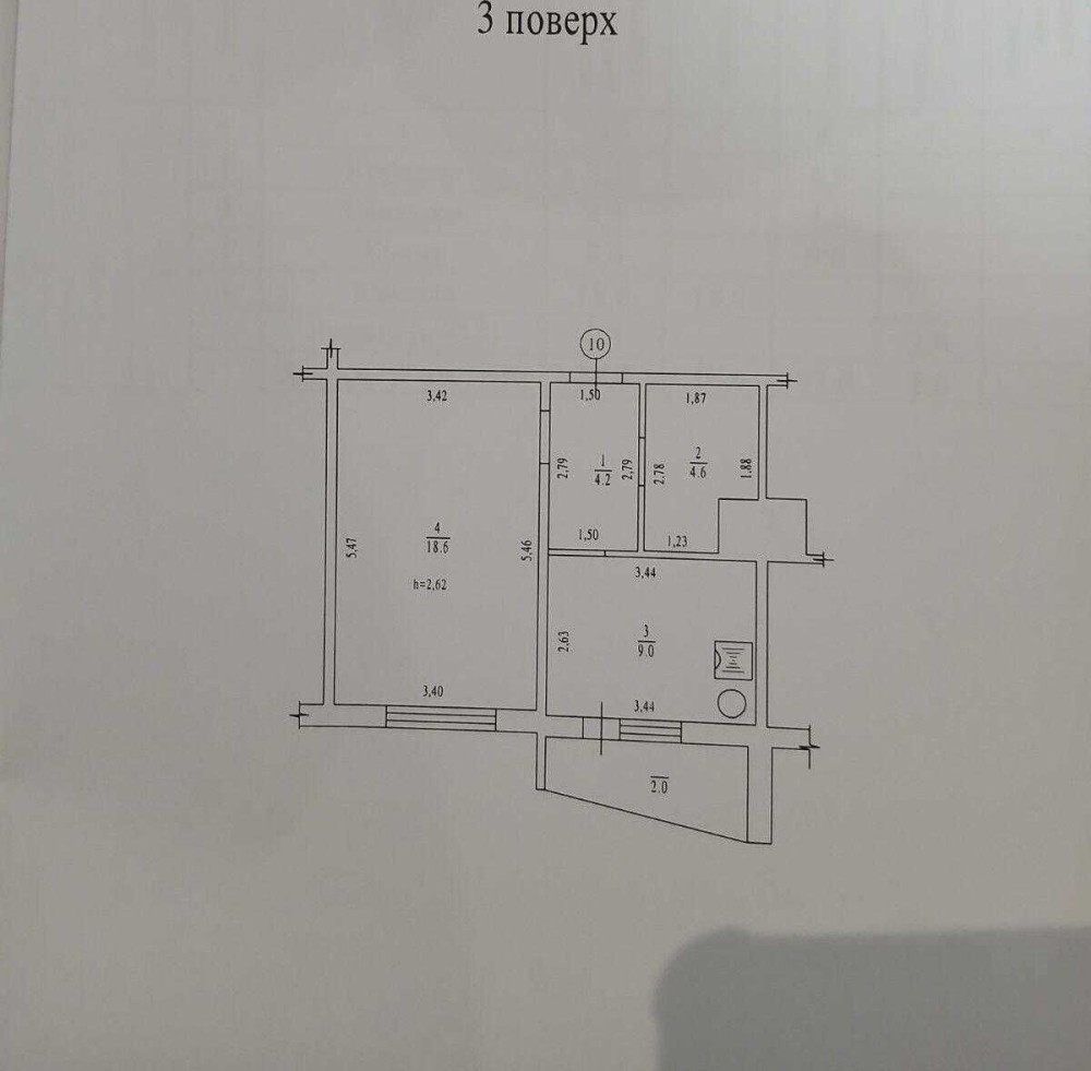 Розташована на 3-му поверсі 10-поверхового цегляного будинку, загальна площа становить 40 м².