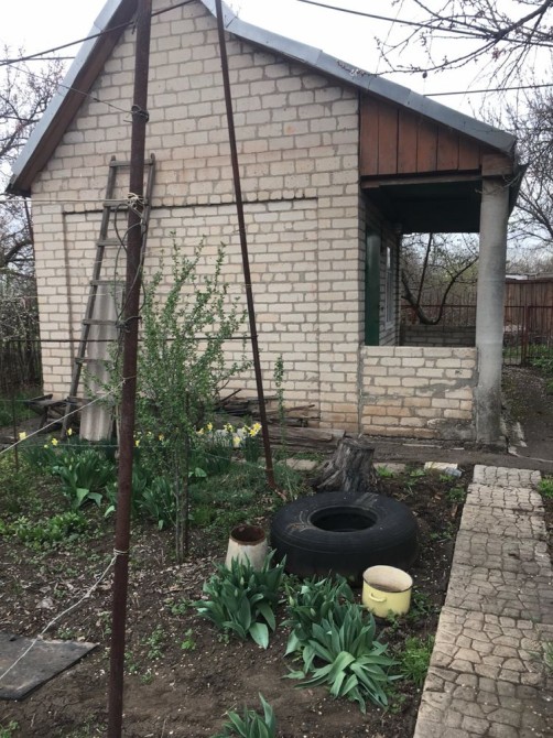 Участок з цегляним будинком одноповерховим з верандою і горіщем . Є холодильник, плитка. Є світло, власна скважина з електронасосом, басейн для технічної води, туалет, приміщення для зберігання садового інвентарю. Фруктові дерева. Є місце для паркування авто