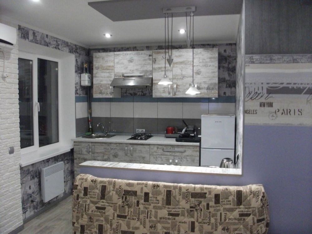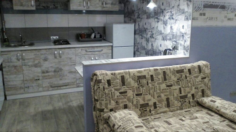 все как на фото (кровать и диван, микроволновка есть, духовки нет, холодильник маленький)