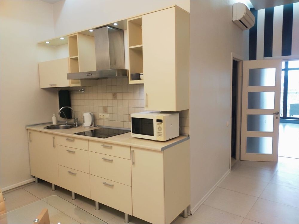 Пропонується в оренду сучасна квартира на Печерську ( вул. М. Омеляновича-Павленка (колишня Суворова), 7). Квартира із сучасним ремонтом. Кімната: двоспальне ліжко, розкладний диван, комод. Кухня укомплектована необхідною технікою (варильна поверхня, духова шафа, посудомийна машина, холодильник,посудомийна машина, мікрохвильова піч). У передпокої простора шафа-купе. Санвузол : душова кабіна, пральна машина, бойлер. З кімнати вихід на відкритий балкон, де відкривається чудовий краєвид на Печерськ. До ст. метро Арсенальна 10 хв. пішки. Вартість оренди 18000 грн. Умови оренди: оплата за два місяці та послуги рієлтора (50%). комісія: 50%