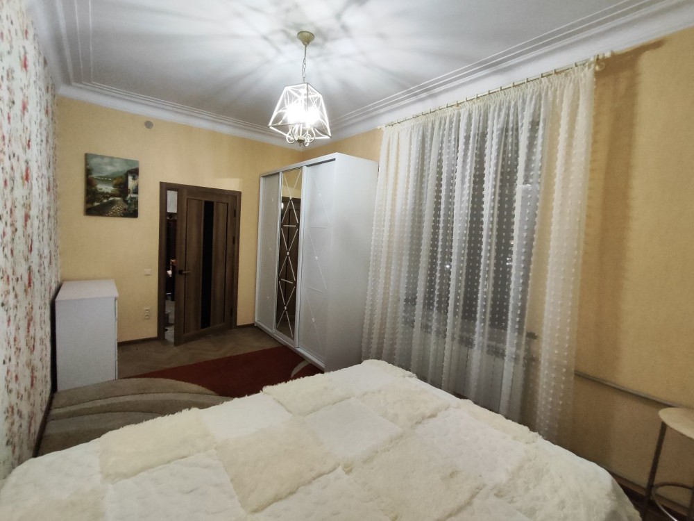 Здаю свою великогабаритну 2-х к/к квартиру в Центрі міста на вул. Соборна. Квартира знаходиться на 3 поверсі 4-х поверхового будинку. Якісний ремонт. Два металопластикових балкона (один виходить на Каштановий сквер, другий на вул. Соборна). Прекрасний вид. Закритий двір. У сусідньому під'їзді справжнє відремонтоване укриття. Всі необхідні меблі та техніка (холодильник, посудомийна машина, мікрохвильова піч, електрична духовка, газова плита, пральна машина, газова колонка). Чистий під'їзд. На поверсі всього 2 квартири, а в під'їзді 6 квартир. Парковка у дворі. В'їзд у двір з вул. Марка Кропивницького (колишня Потьомкінська) і з вул. Велика Морська за допомогою пульта. Також можна зайти у двір напряму з вулиці Соборна. У сусідньому під'їзді відремонтоване укриття, з туалетом, умивальниками та запасом води. Безпосередньо в будинку знаходяться ресторани, піцерія, пивоварня, магазини одягу, косметики та парфумерії. Через дорогу Каштановий сквер, який є одним з найулюбленіших місць городян. У безпосередній близькості знаходиться зупинка громадського транспорту. Відносно невеликі комунальні платежі (близько 1000грн). Можлива оплата безготівково на розрахунковий рахунок приватного підприємця + 20% до вартості оренди.