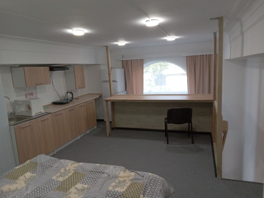 Состоит из двух уровней. Для одного или пары. Район проспекта И. Мазепы. Ул. Коржева. Тихое, спокойное место, и соседи. Спальное место 1,60 на 2.00 м. Все новое. Стиральная машина автомат, холодильник, индукционная плита, микроволновка, эл. чайник. Wi-Fi есть бесплатно. Дом теплый, толстые утепленные стены.