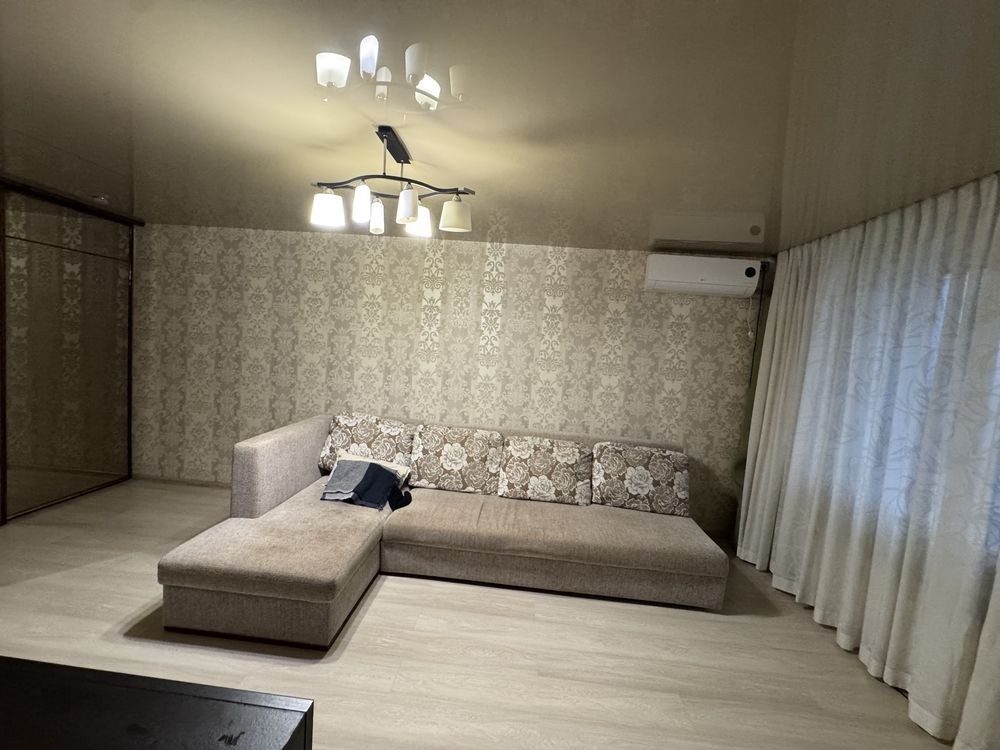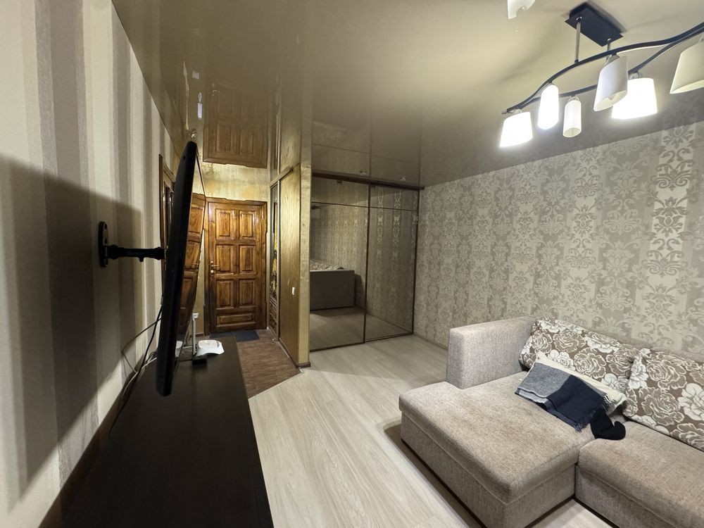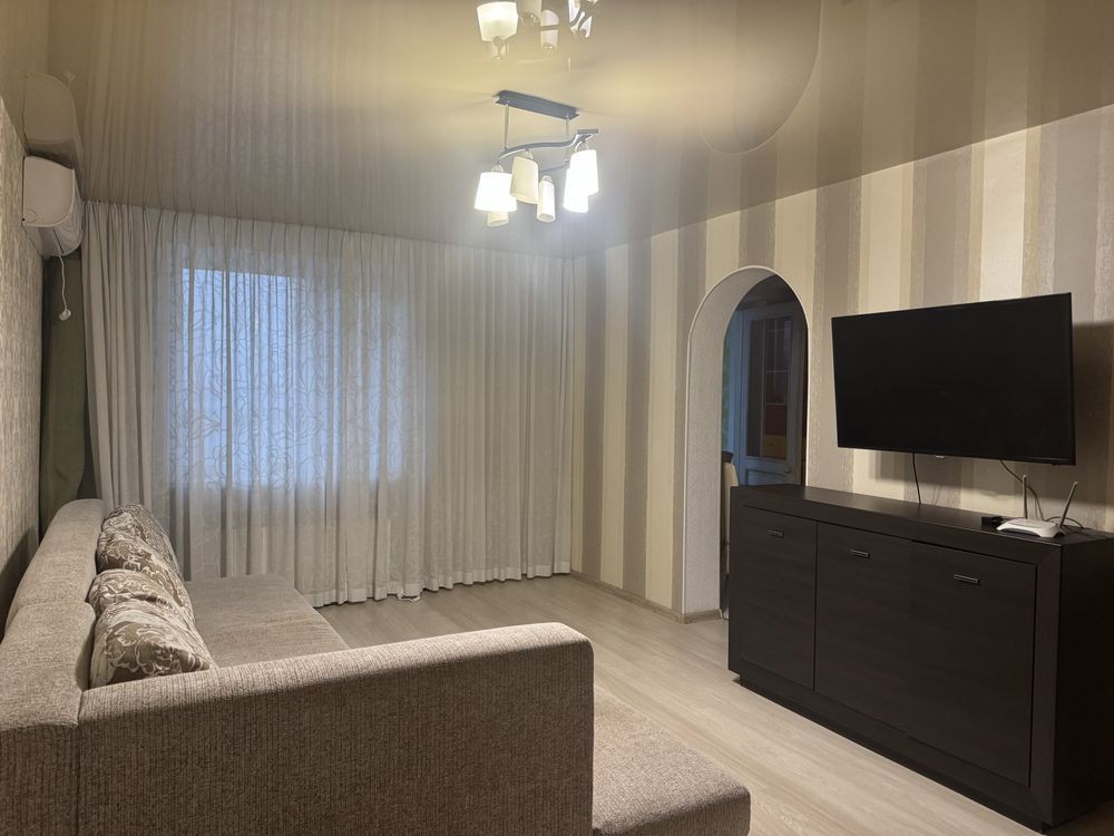 Сдается большая, видовая 1 ком квартира, которая разделена на зоны. В зоне сна двухспальная кровать с ортопедическим матрасом.