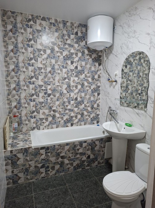 Санузел облицован импортной плиткой, бойлер.
