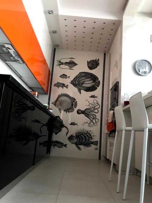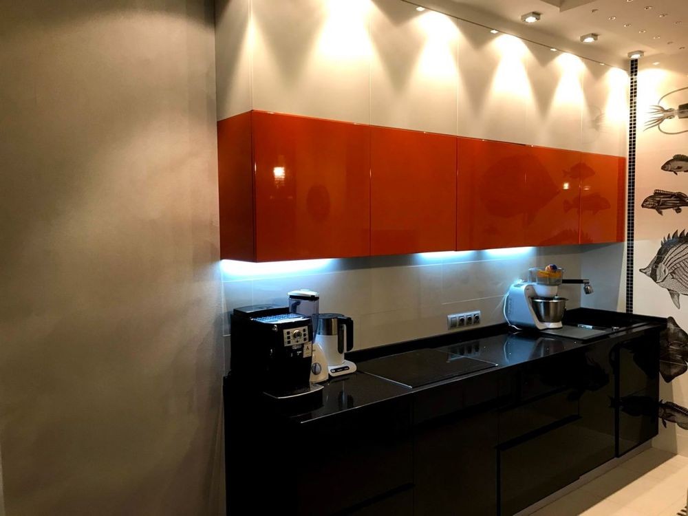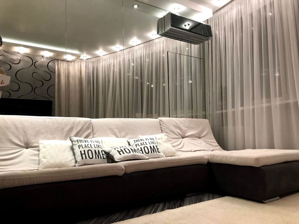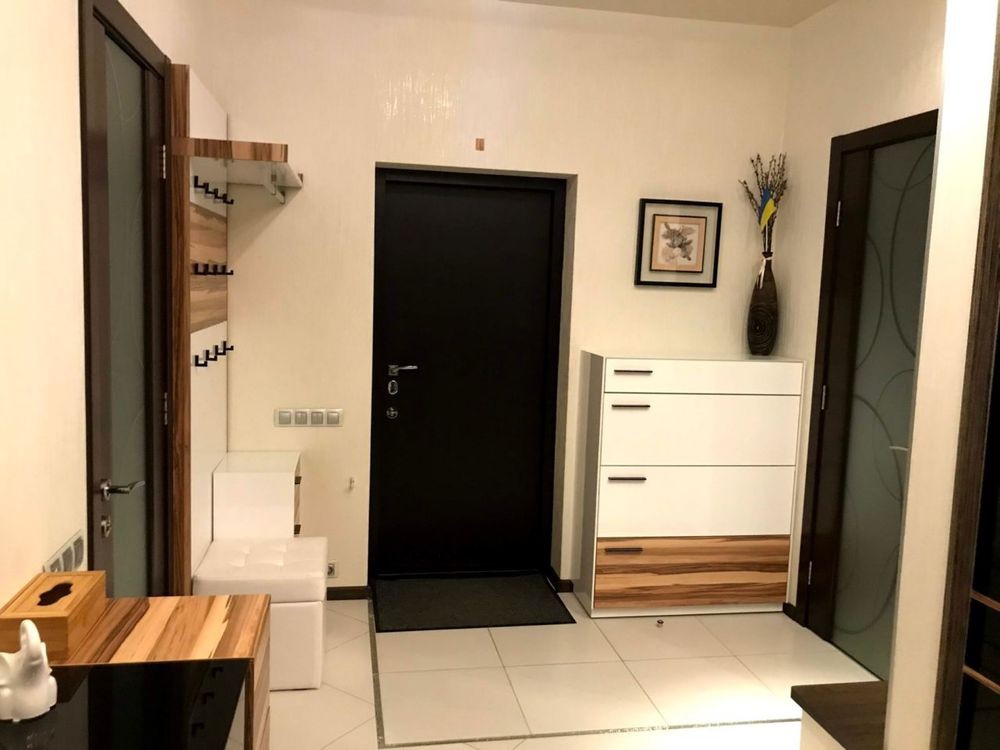 Мебель встроенная, сделана под заказ из дорогостоящих материалов, оснащена фурнитурой Blum. Техника Bosch, Siemens, LG. Теплый электрический пол. Межкомнатные двери ф-мы «Папа Карло». Столешница кухня, подоконники -камень . Сантехника, обои, светильники и люстры - Италия. В квартире 2 выхода.