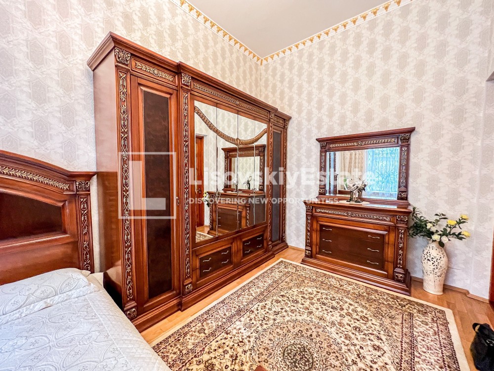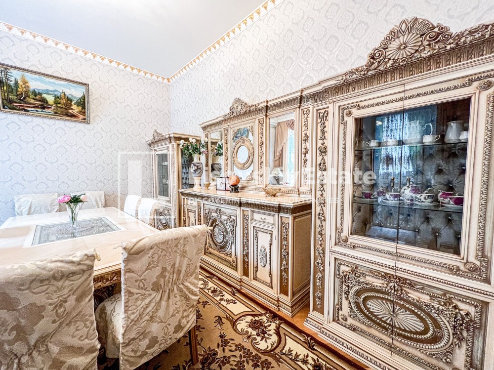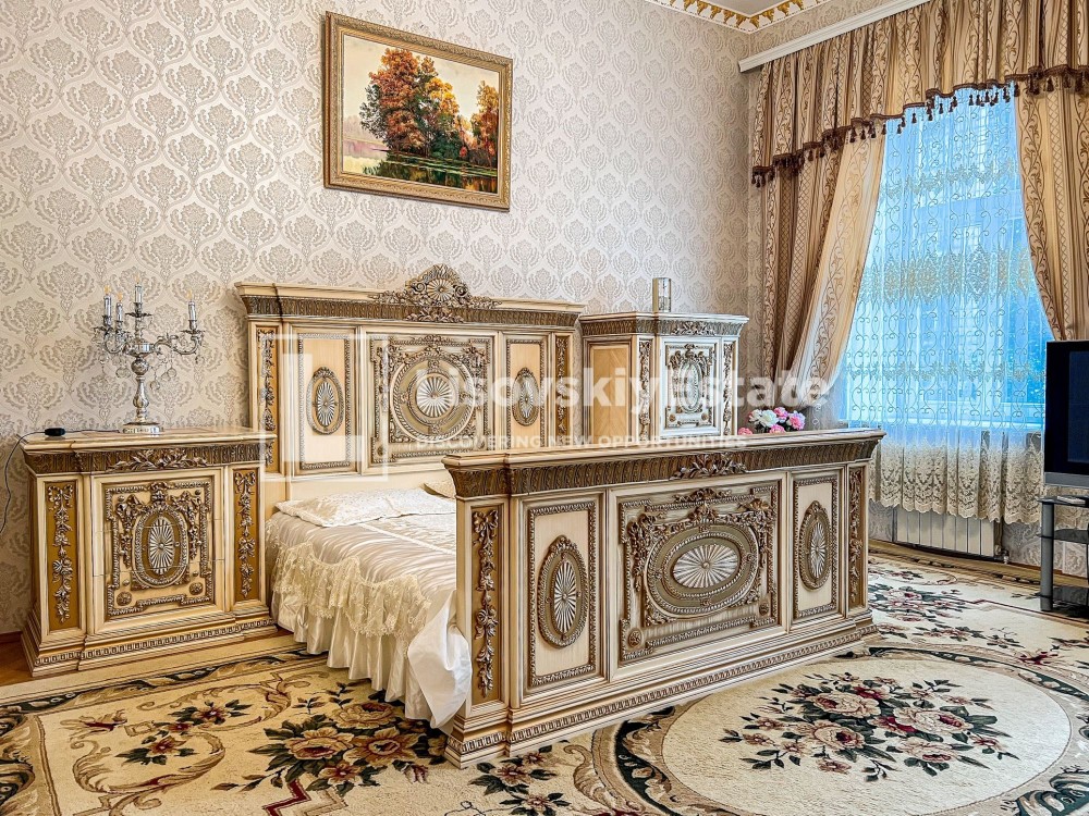 В квартире четыре кондиционера, две двуспальные кровати, (балкон переделан в дополнительную комнату). В коридоре огромный шкаф-купе (высотой 3.8м). Санузел из итальянского кафеля. Высота потолков 4.2м.