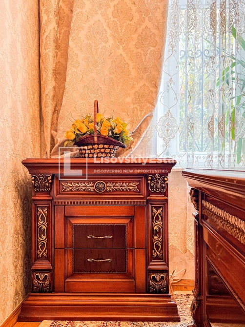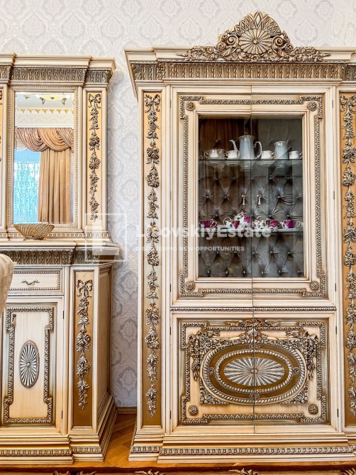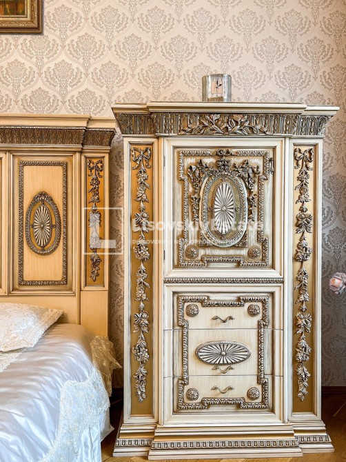 Выполнен ремонт с использованием итальянской мебели (делалась под заказ) и качественной бытовой техники. Фурнитура “Swarovski”.