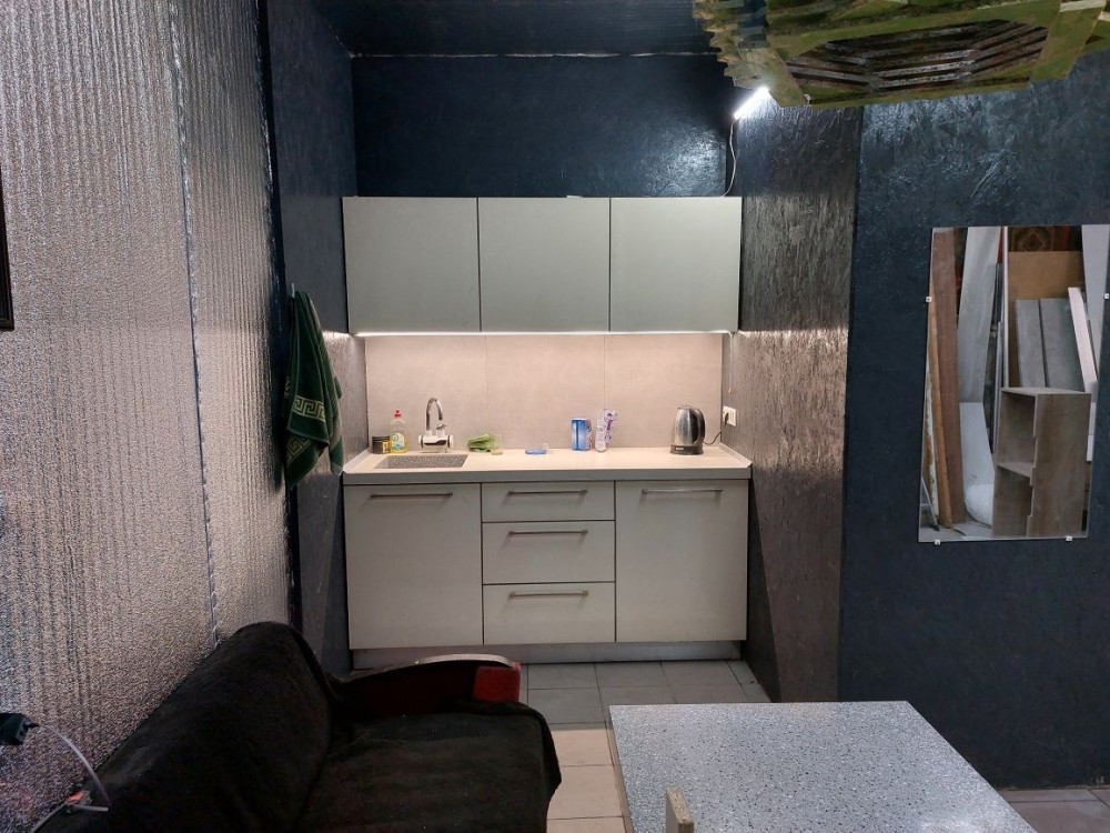 Пол плитка керамогранит, потолок плиты подшиты osb + фольга, кухня с искусственного камня, Туалет, 380 вольт, скважина 52метра, сливная яма, походной погреб перекрыт жб шпалами, вентиляция
