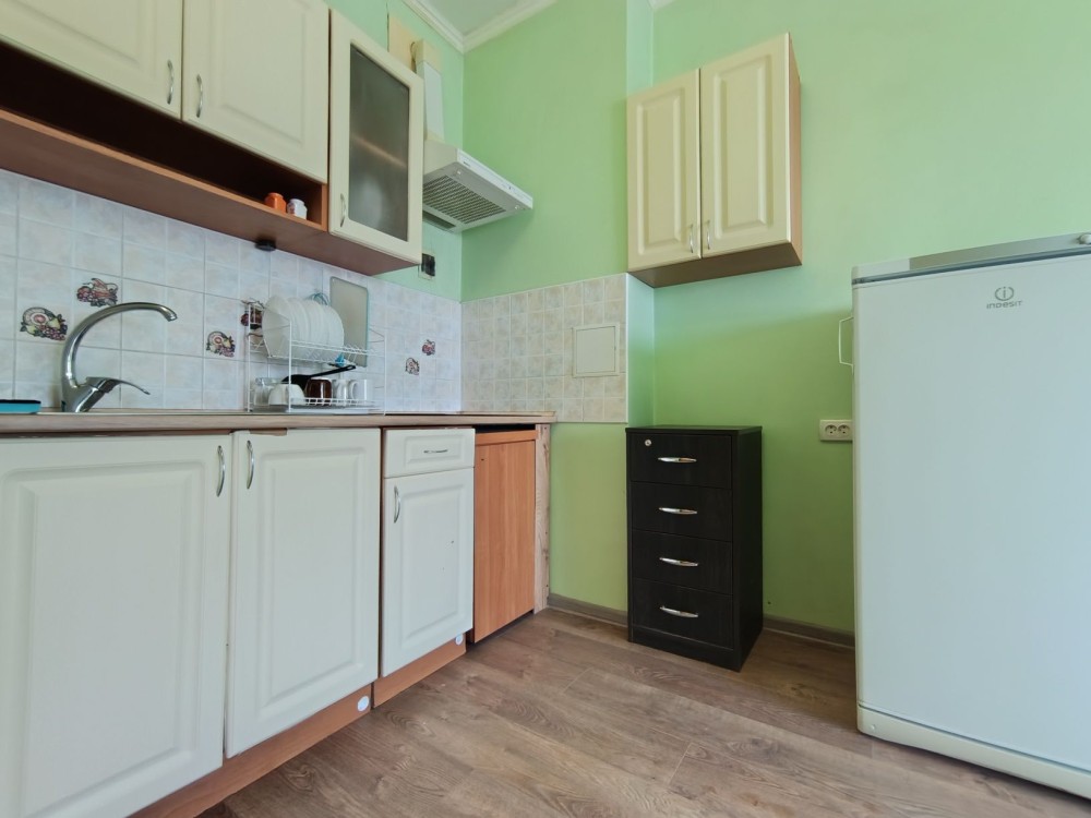 Пропонується в оренду сучасна квартира на Печерську ( вул. М. Омеляновича-Павленка (колишня Суворова), 7). Квартира із сучасним ремонтом. Кімната: двоспальне ліжко, розкладний диван, комод. Кухня укомплектована необхідною технікою (варильна поверхня, духова шафа, посудомийна машина, холодильник,посудомийна машина, мікрохвильова піч). У передпокої простора шафа-купе. Санвузол : душова кабіна, пральна машина, бойлер. З кімнати вихід на відкритий балкон, де відкривається чудовий краєвид на Печерськ. До ст. метро Арсенальна 10 хв. пішки. Вартість оренди 18000 грн. Умови оренди: оплата за два місяці та послуги рієлтора (50%). комісія: 50%