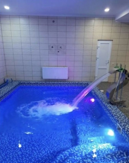 Холодильник, печь электро,печь свч,чайник, постельное белье,матрас все новое,холодная, горячая вода,туалет, стиральная машина,интернет кабель,дежурное освещения генератор , душь,бассейн , действующая баня ,