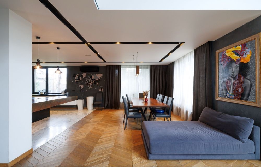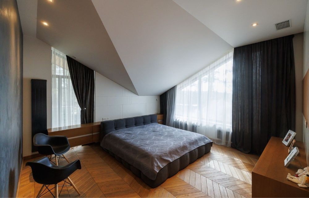 Площа 550 м2-розумне планування. Поверх спальних кімнат: одна основна з санвузлом та гардеробною та дві окремі с суміжним санвузлом.