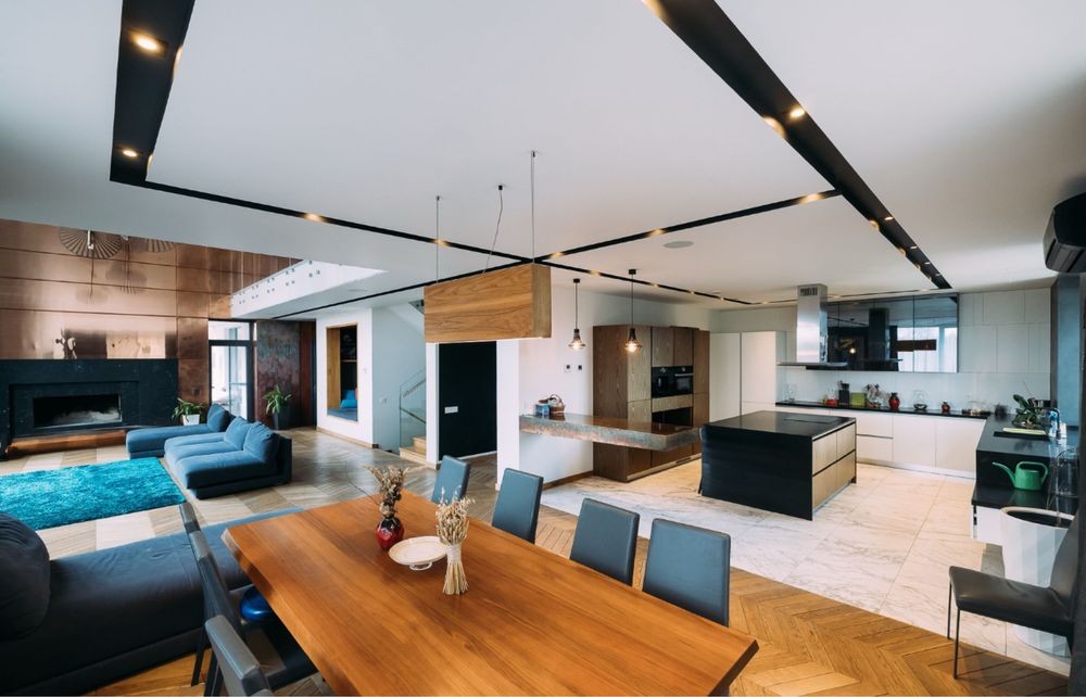 Поверх вітальні з камінним залом, окремою кімнатою з проєктором, санвузлом та відкритою терасою.