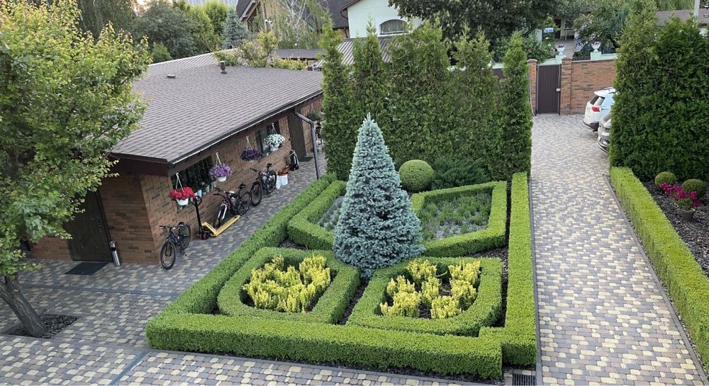 Територія ДУЖЕ зелена та доглянута, ландшафтний дизайн, туї , самшити, ялівець, 4 сотки газону!!! Є малина, смородина, шовковиця та абрикоси.