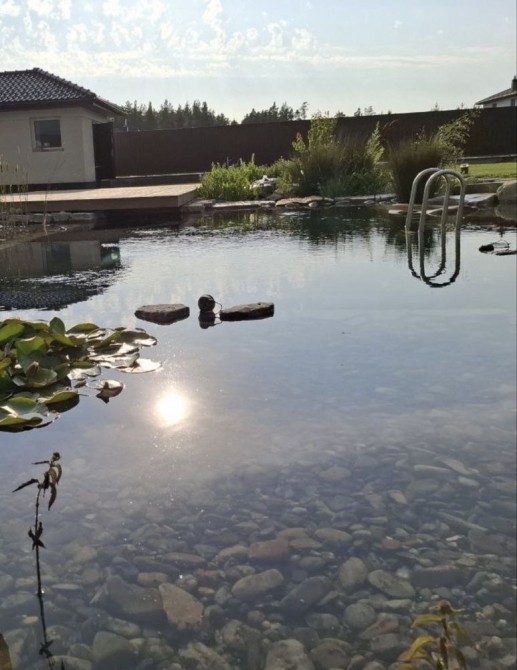 Вода очищується через систему фільтрації та спеціальні водні рослини, які підтримують природну чистоту води.