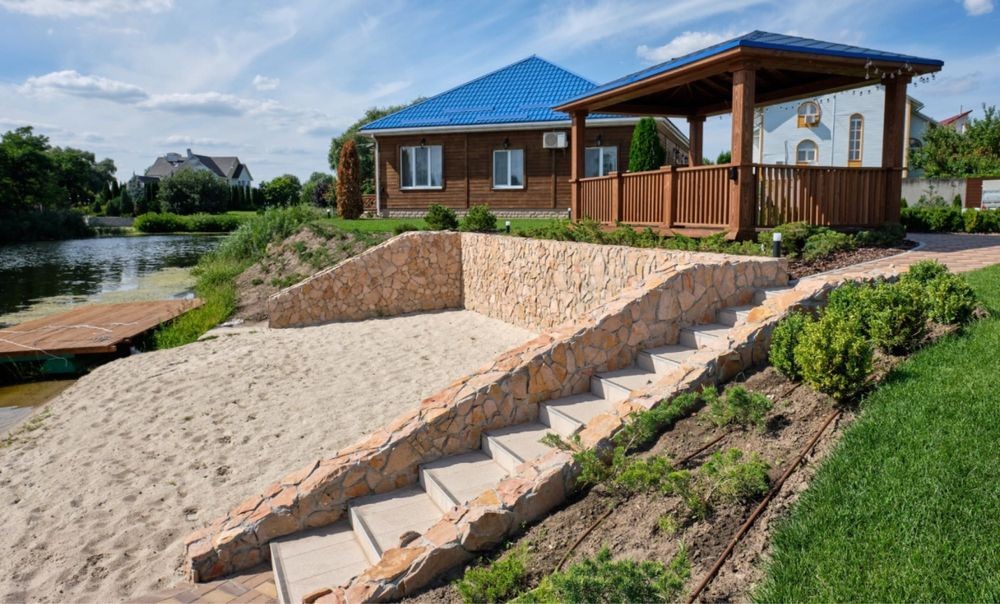 Здається в оренду будинок з котеджем в мальовничому місці з виходом на затоку річки Дніпро в закритому кооперативі в Осокорках (район першого шлюзу, в 15 хвилинах їзди від метро Славутич).