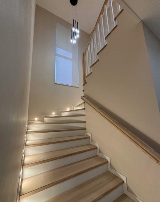 Другий поверх: На другому поверсі знаходяться три спальні, два санвузли та робочий кабінет з виходом на терасу. Основна спальня має власний санвузол, гардеробну кімнату та балкон. Кожна спальня і санвузол виконані в індивідуальному дизайні.
