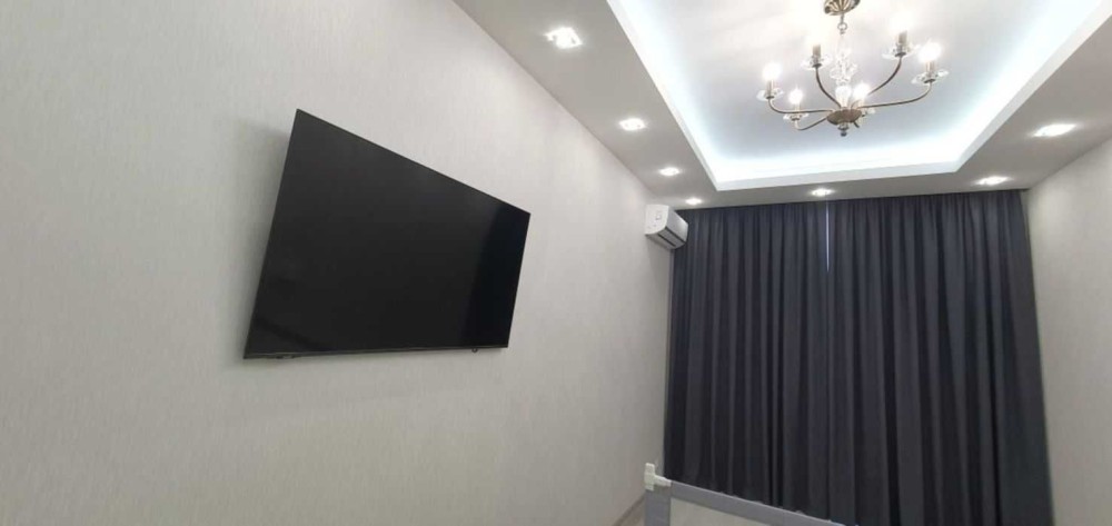 Спальня : двухспальная кровать , телевизор 55" , шкаф-купе , прикроватня тумба
