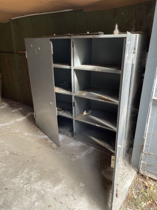 Є стелаж з поличками, видно на фото