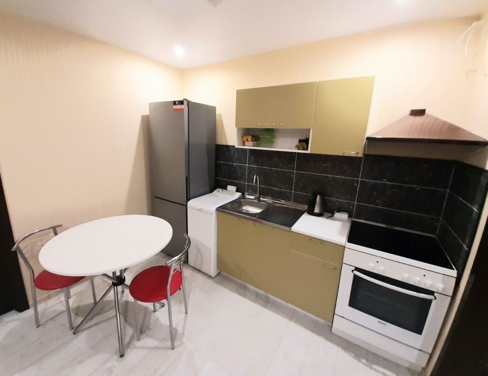 В квартире есть вся необходимая бытовая техника: холодильник, стиральная машина, плита, духовка, микроволновка.