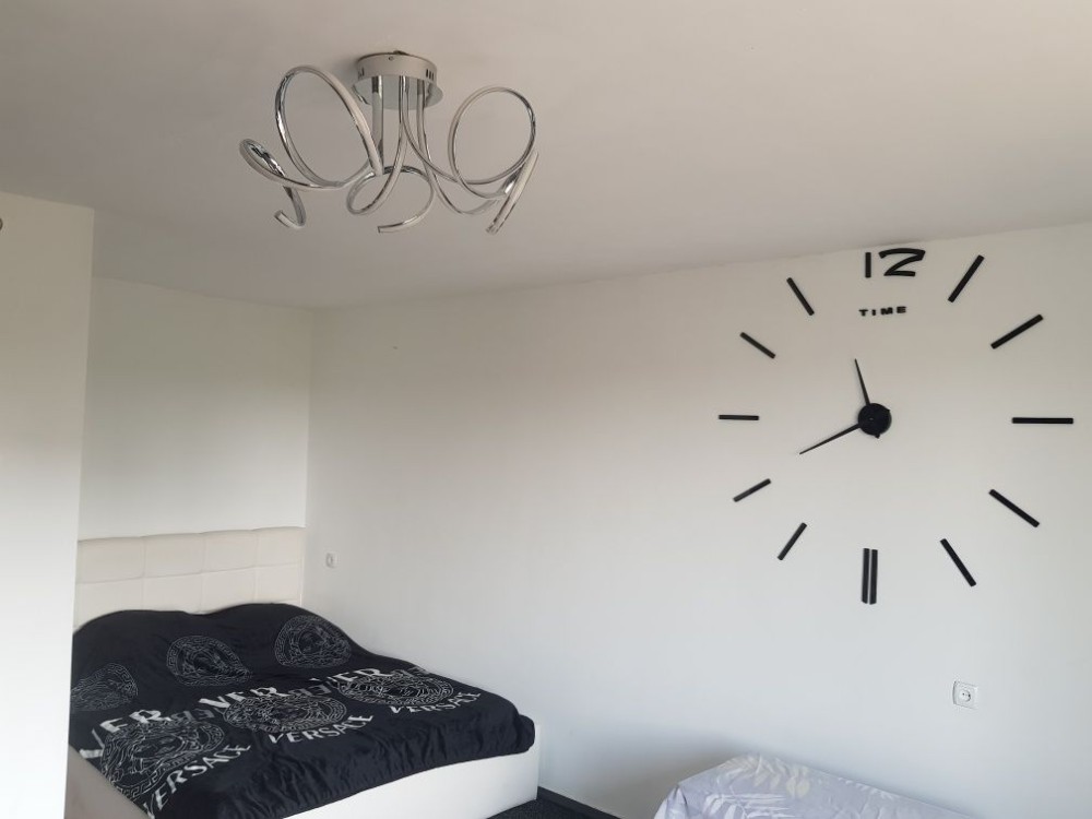 В квартире есть горячая вода , бойлер , телевизор , холодильник , пылесос ,утюг, фен , чайник ,печка , набор посуды , двухспальная кровать , двухспальный диван .