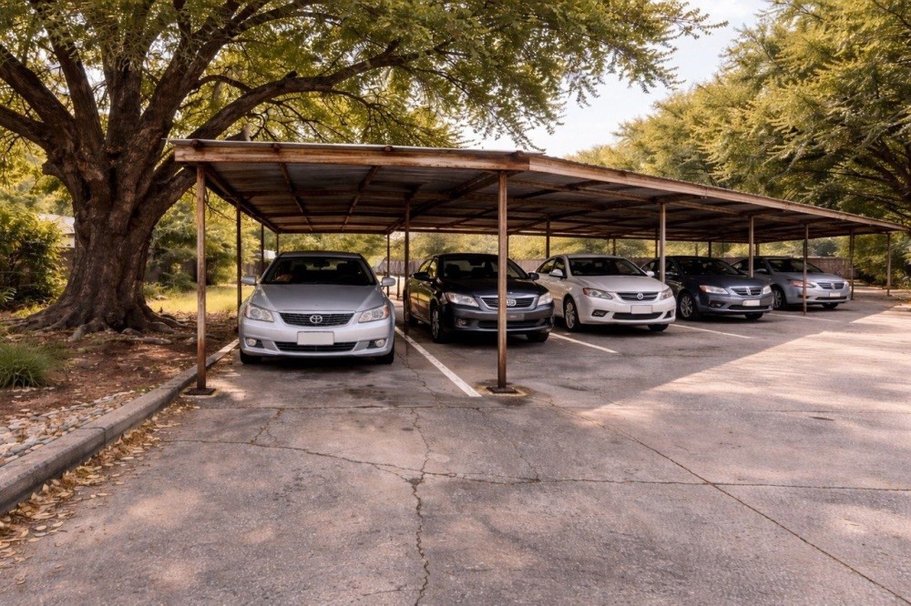 Крытое парковочное место находится недалеко от школы #78, по адресу Люстдорфская дорога 158.