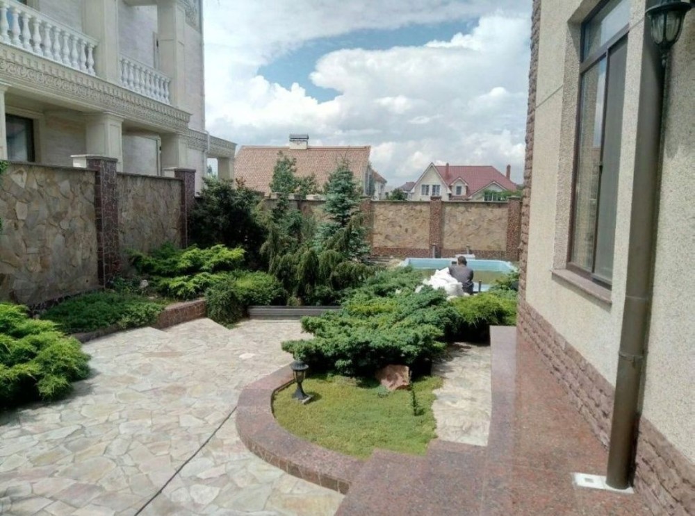 Село Забуччя. 13 км від КП по Житомирській трасі, 19 км від автост.Дачна. 4 км до ЖК Синергія (Ірпінь), 7 км до Бучі. Будинок має 6 кімнат (4 спальні), 2 зали, 4 санвузла, душова. Асфальтований під'Їзд.Будинок під охороною, камери відеоспостереження. Ділянка: Ландшафтний дизайн,басейн, автополив. Відкрита тераса з барбекю. Будинок має мансарду та цокольний поверх. На першому- хол та кухня-студіо, санвузол, туалет та гараж 35 кв.м.. На другому спальня та двоповерховий кабінет, який можно облаштувати під спальню. На третьому кабінет, спальня з санвузлом. Останній поверх- мансарда з санвузлом. На цокольному поверсі велика кімната( під спортзал)де є бігова доріжка, пральна, сауна,душова, техприміщення та 2 кімнати-кладові. На другому поверсі відкрита велика тераса, на третьому балкон. Підлога, керамограніт, плитка, ламінат. Газове опалення, підігрів підлоги на декількох поверхах. камін, сауна. 3 кондіціонера, газовий котел та електроболер. Інтернет оптоволокно.