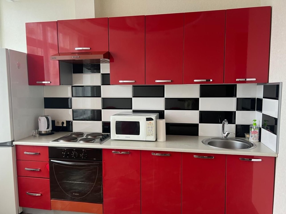 Газа нет, кухонная плита электрическая. Отопление автономное. Совместный санузел, туалет/ванная. Балкона нет. В квартире есть шкаф, кровать, матрац новый, прикроватные тумбочки, диванчик, комод и вся кухонная мебель. Охрана.