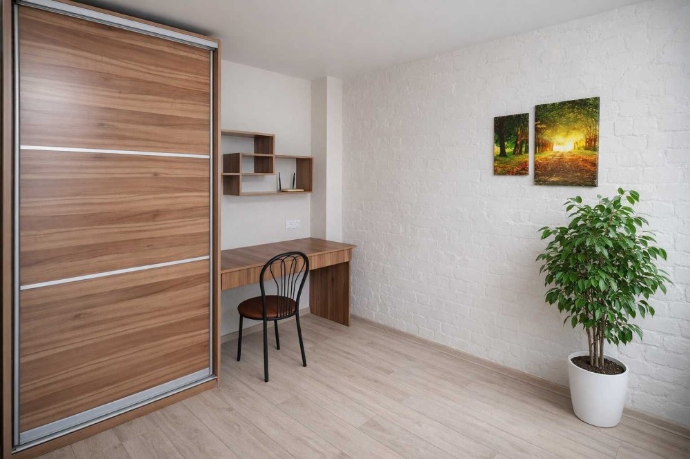В квартире есть вся мебель( 2 встроенных шкафа-купе, большой 2-х спальный диван, встроенная кухня, письмен. стол и др), есть вся бытовая техника(Стиралка, микроволновка, телевизор, холодильник, бойлер, утюг и др)