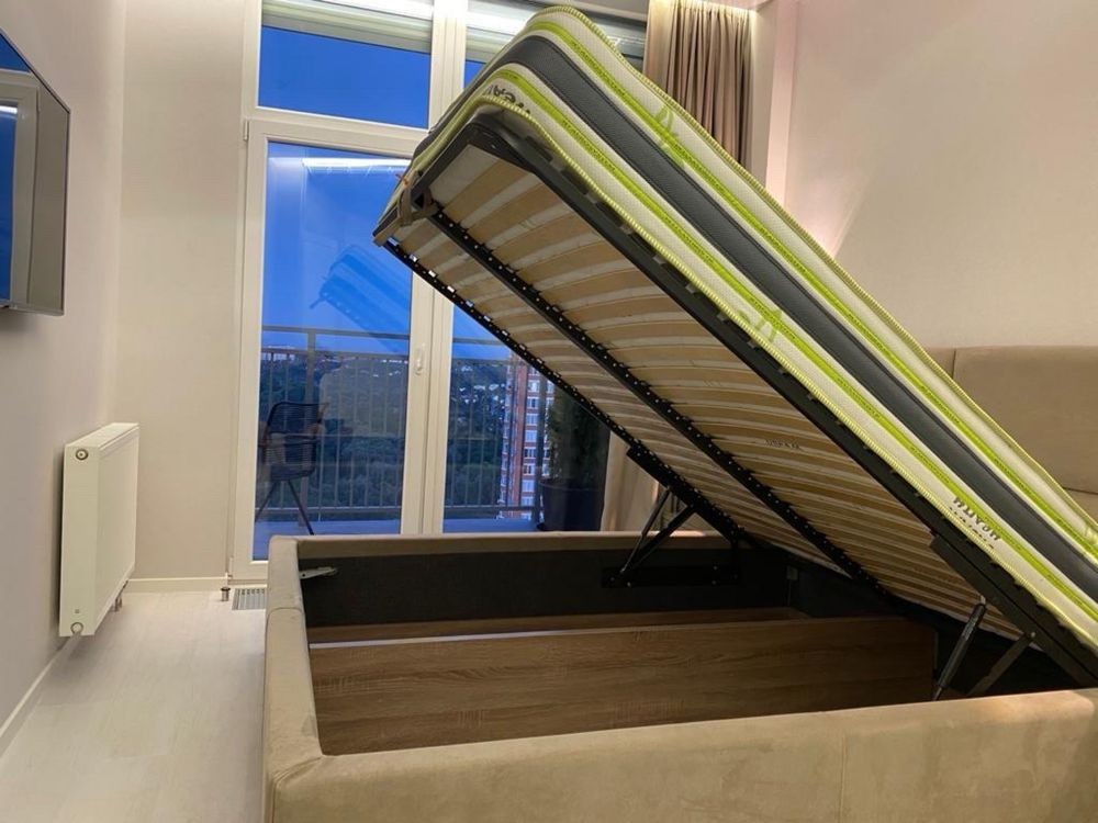 Планування: кухня-студія, спальня, с/в, тераса. Квартира з сучасним стильним ремонтом, укомплектована повністю меблями та технікой. Ціна 600$