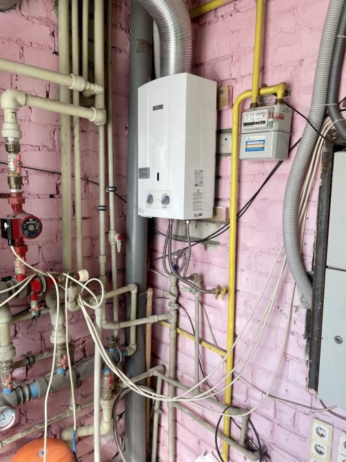 В доме 2-х контурный котел+ газовая колонка,сигнализация.