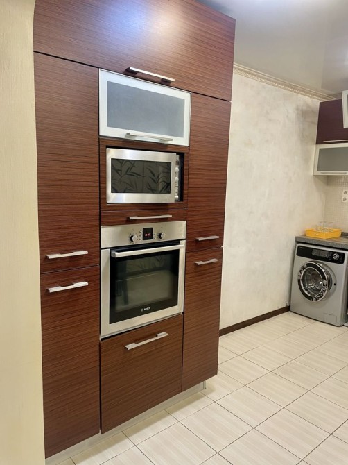 На кухне-духовой шкаф,микроволновка,стиральная машинка,газовая поверхность,холодильник,посудомойка.
