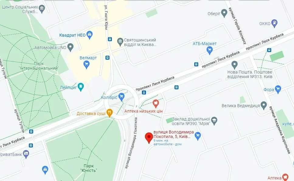Напротив Колибриса и парка Юность. До остановки Гната Юры - 2 мин.