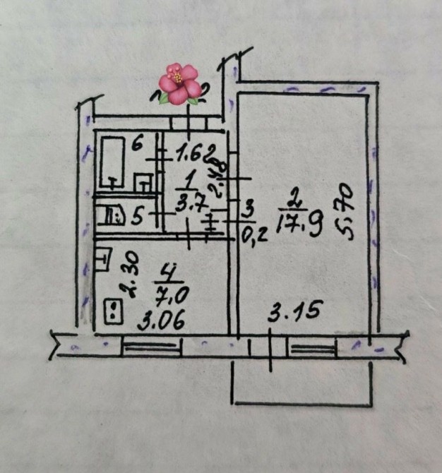 • Площадь кухни 7 м2