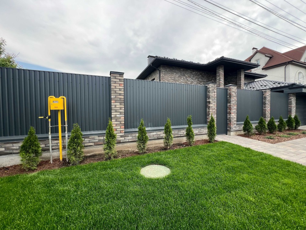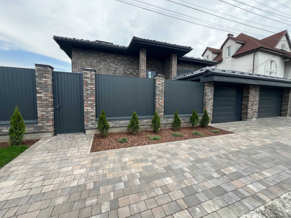 Огорожа: фасад – бетон + автоматичні ворота, боки – металопрофіль