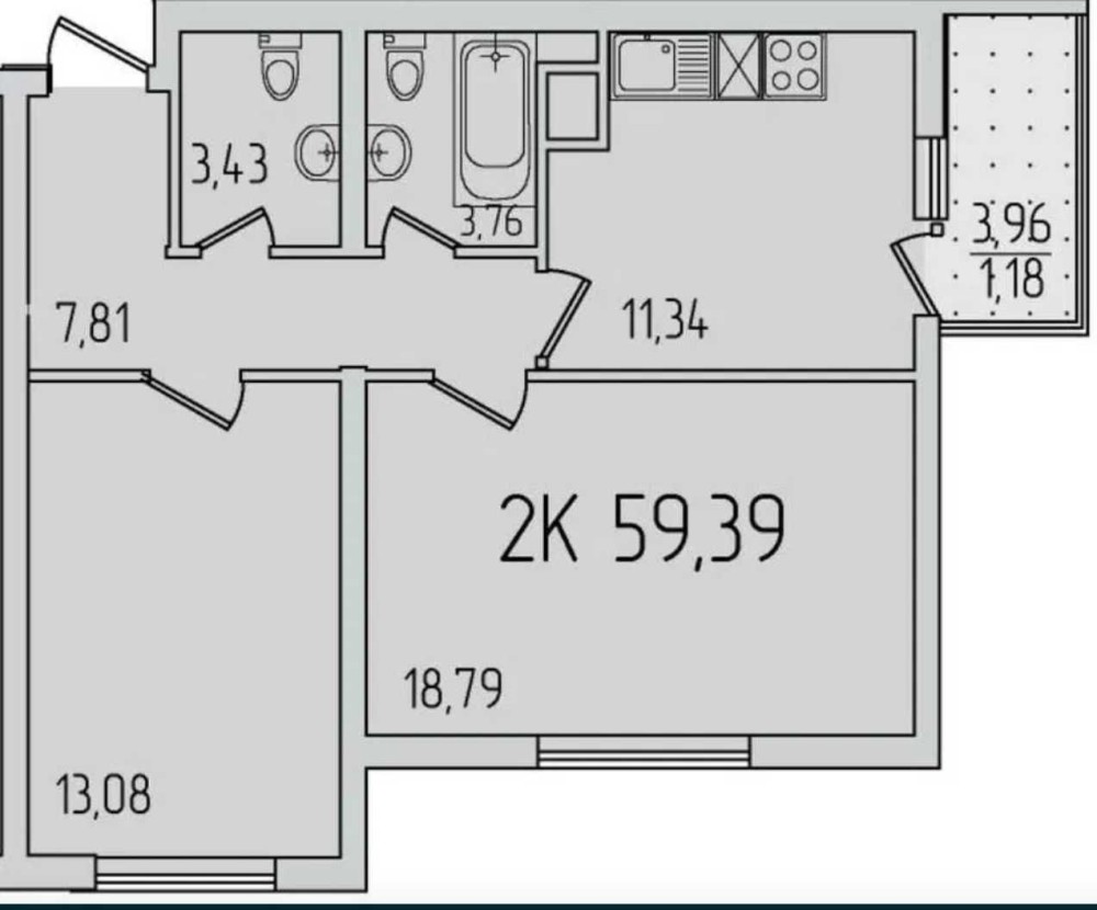 • Общая площадь 58.6 м2