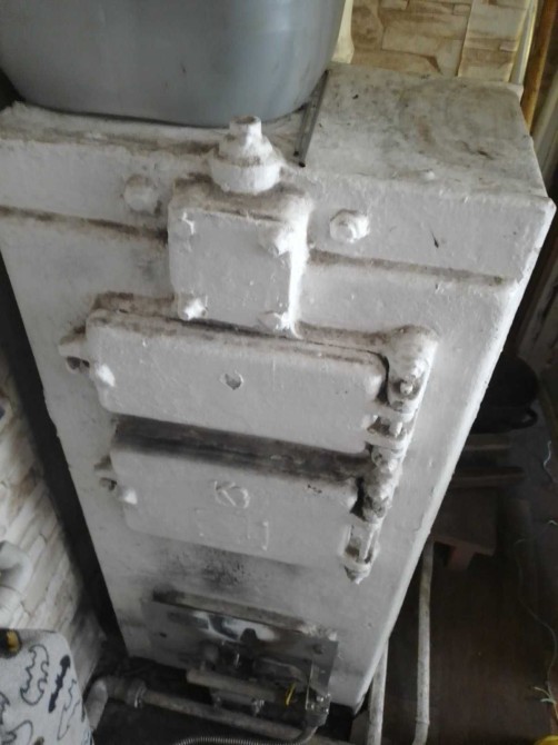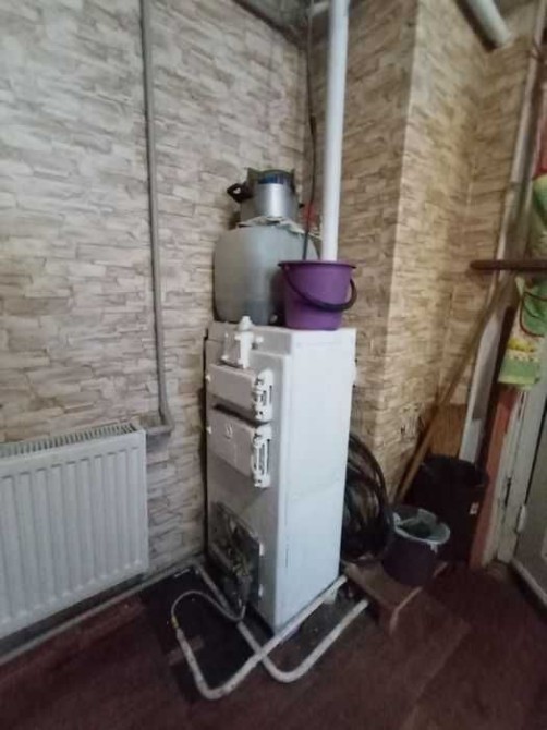 Опалення газовий котел, який можна переробити на твердопаливний. Декоративний камін, який також можна переробити на сучасний на дровах.