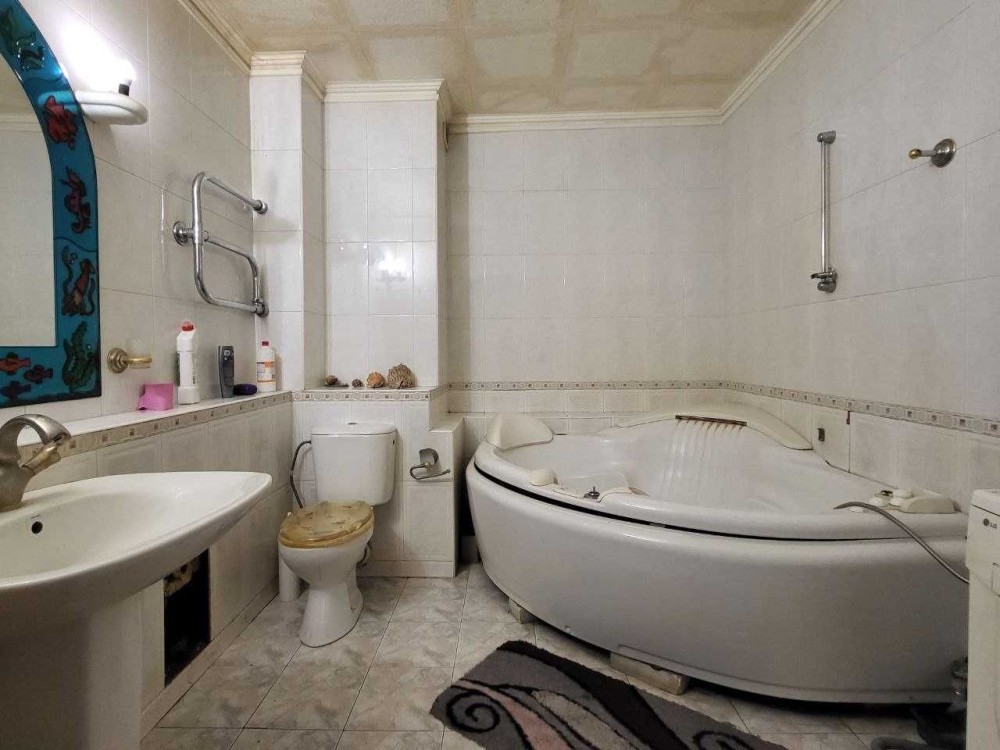 Квартира повністю готова до проживання. Є затишна спальня для батьків, окрема кімната під дитячу або кабінет, простора вітальня. Кухня сучасна, вбудована, з газом — зручно та надійно. Санвузол обладнаний джакузі. У квартирі залишаються меблі та техніка: шафа, ліжко, кондиціонер, пральна машина, холодильник, встановлені лічильники.