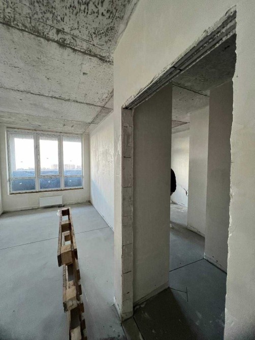 • Стан після будівельників: стяжка підлоги, штукатурка, встановлені радіатори, лічильники, двері, домофон, вікна.