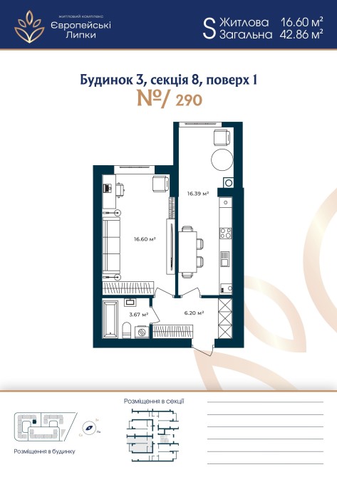 1-к 42 м², ЖК Європейські Липки | Держпрограми/ЄОселя