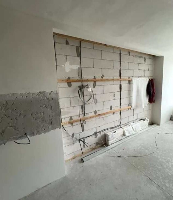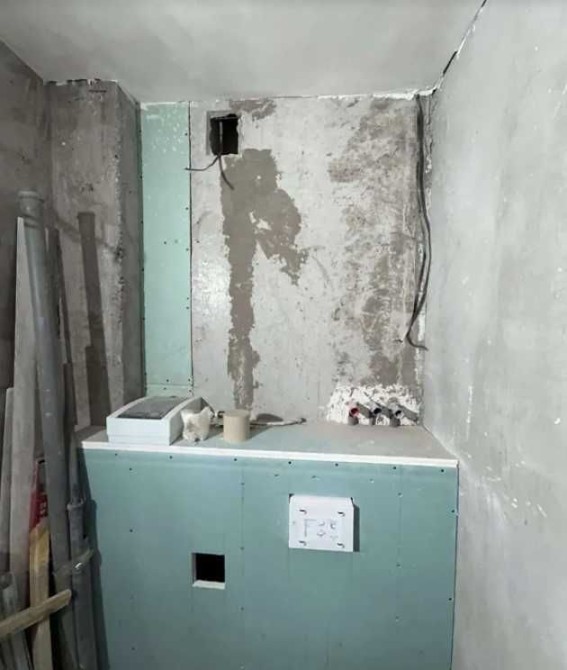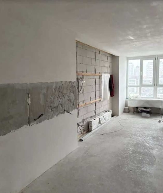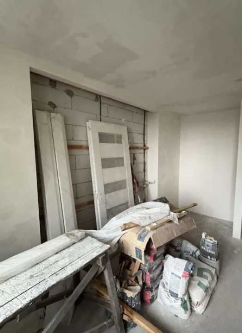 У квартирі вже виконано якісні чорнові ремонтні роботи: розведено електрику та сантехніку, стіни оштукатурені, підготовлена підлога, облаштовані ніші під вбудовані шафи.
