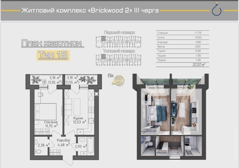 Продаж 1-к квартири в cучасному ЖК Brickwood-2 Гостомель.