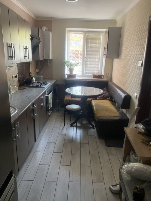 Квартира ззовні утеплена пінопластом 10 см., окремий вхід обшитий металом, всередині тротуарна плитка. Тепла, затишна. Підлога в кухні, коридорі та ванній плитка, в кімнаті ламінат. Потрібно лише переклеїти шпалери або зробити фарбування стін ( по бажанню господарів). Частково залишаються меблі.