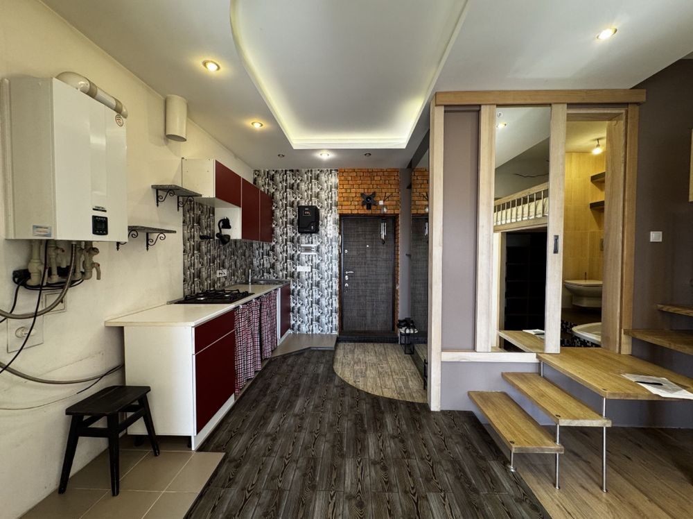 Встановлений 2-х. контурний газовий котел, є тепла водяна підлога, радіатори, терморегулятори, стабілізатори напруги, кондиціонер, колонки (музичні).