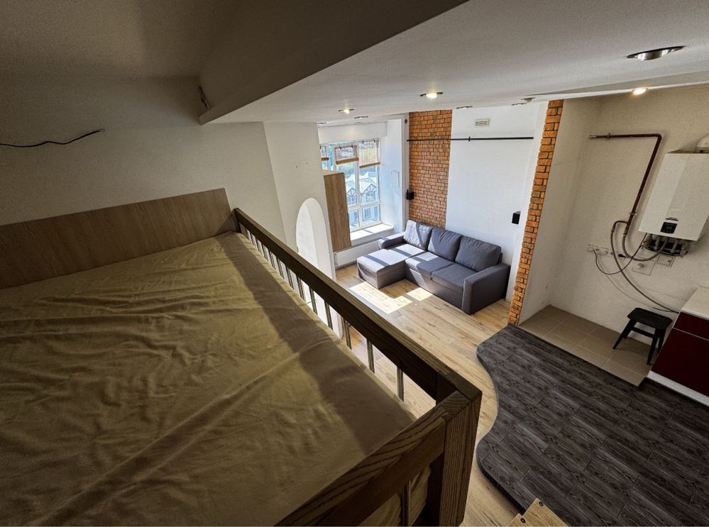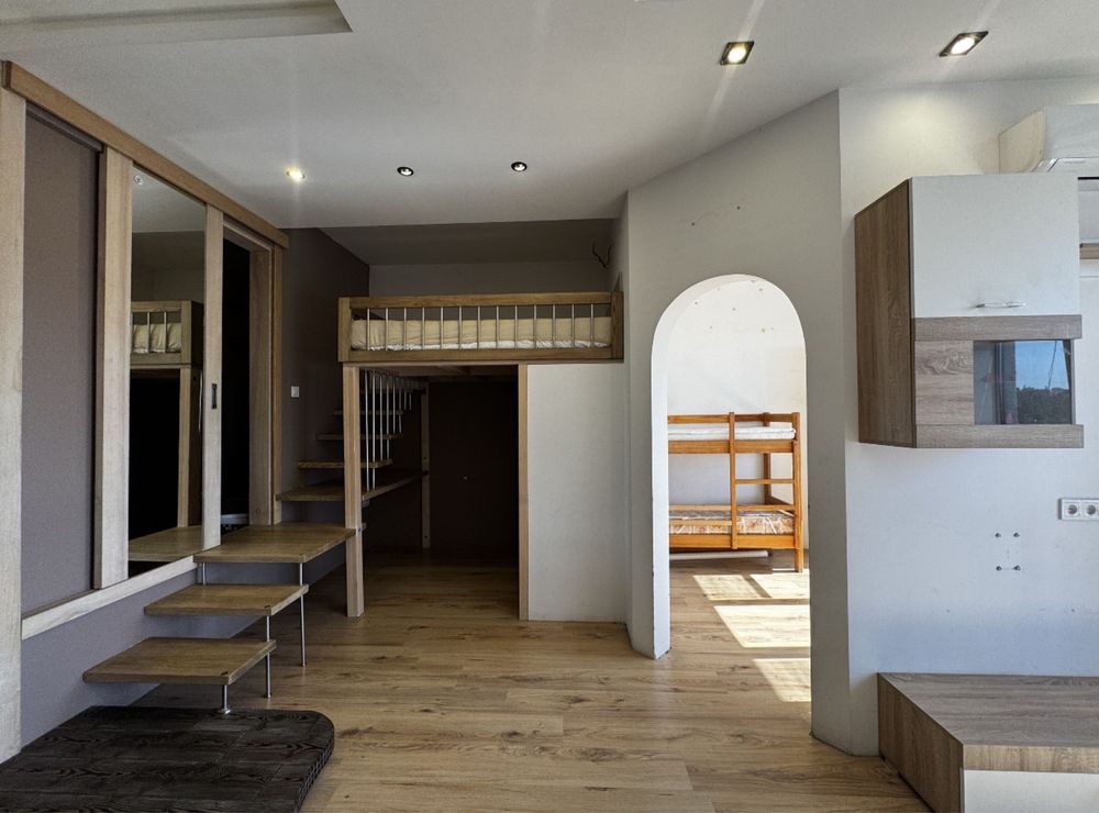 Є окрема кімната 6м2, кухня-вітальня, спальне місце (ліжко), робоча зона (письмовий стіл, із додатковим місцем для зберігання речей)