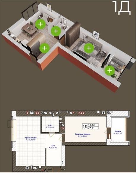 — Загальна площа: 48 м²